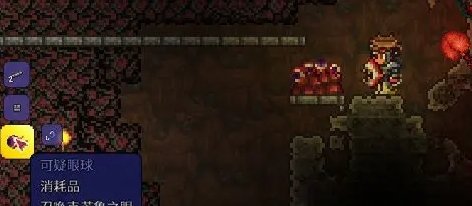 除了制作得到外,可疑眼球还有一定的几率出现在地下洞穴的黄金宝箱、冰冻宝箱、常春藤箱以及地牢上锁的黄金宝箱中。