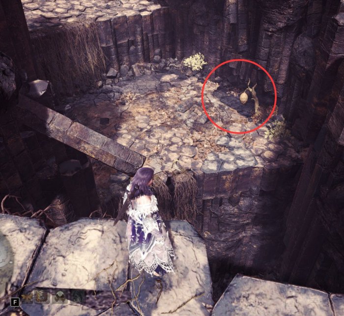 这里往下看,营地就在这个蜂蜜的旁边,可以直接跳下,然后爬藤蔓上来。