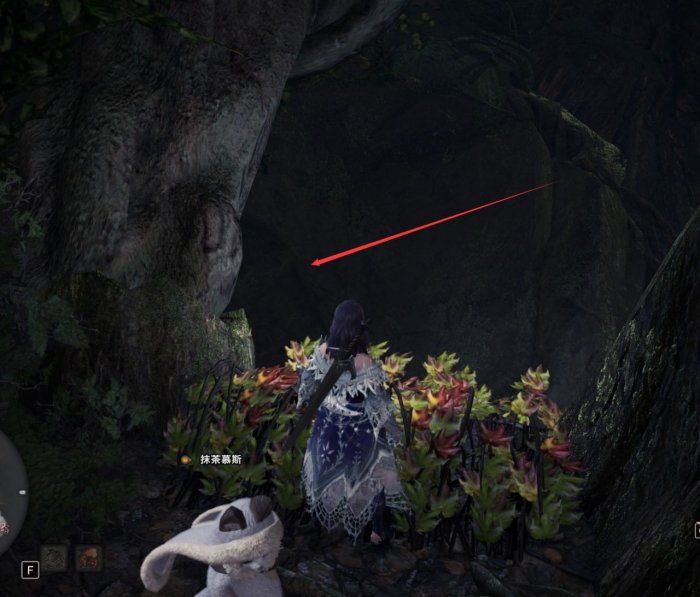 北东营地帐篷出来左手边飞砾果实(投射物)旁边的藤蔓处,跳下去往左边走,抵达毒妖鸟巢穴。