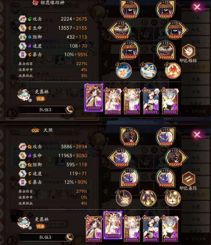 小怪阵容和BOSS阵容不用换式神,只需要换天照的御魂即可!