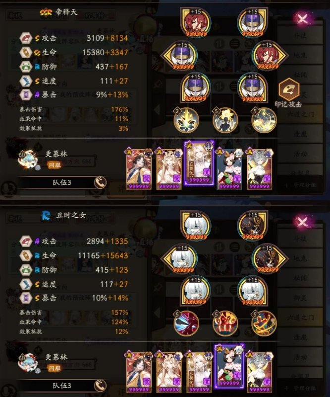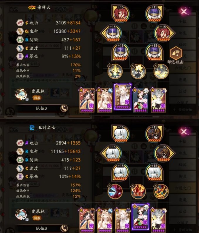 阵容:天照+SP缘结神+帝释天+丑女+SP追月神