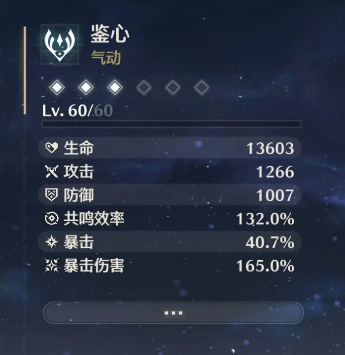 这个练度应该不能说高吧,可以看到。我们鉴心由于和忌炎同属性可以沾沾光蹭一下30%的气动加伤,可以看出群怪环境下鉴心的输出还是比较可圈可点的,60级打75级怪也能拿下三星。机制完善也更不容易翻车。