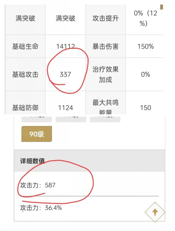 首先得明确一个概念,百分比攻击力加成的基底是攻击白值,角色自身固定数值与武器固定数值即为白值,如图这是一只没有穿戴声骸的60级牢心。