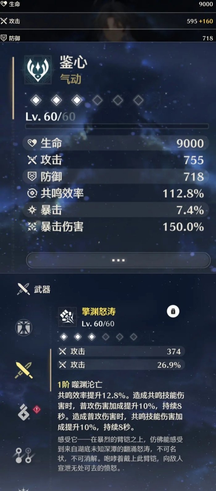 所以不必强堆攻击力。何况我们鸣潮自有国情在此。深渊的机制也决定了会有虐菜局与高端局。那其实可以换个思路。把我们牢心当主c来养,并在较底层关卡中让牢心单带,从而节约大c体力。让一个大c打两遍关底。在角色池不多深度不够的游戏初期还是挺有用的