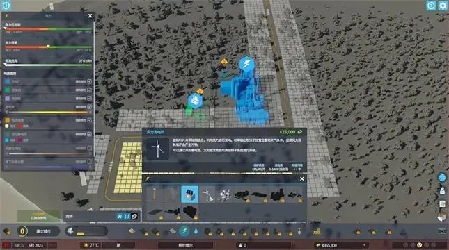 一进入游戏,教学系统立刻将最基础的城市功能建设方式依次列出,要求玩家为城市规划出居住区、商业区、工业区,并完成三大基础服务建设——电力、供水与排污系统。所有操作步骤都十分清晰地进行了引导,为玩家讲解如工业区需考虑风向水流,避免污染居住区环境,电力供应可选择火力、风力或直接从周边城市购买等方式获取。一瞬间就让你对城市的基础运转情况有所了解。