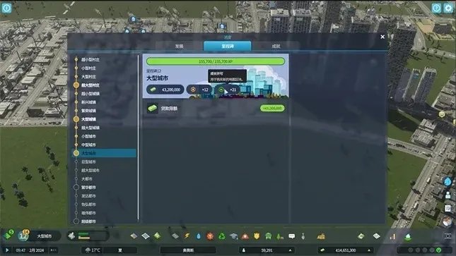 对于没有游戏目标就容易陷入迷茫状态的玩家,”里程碑“系统可以帮助制定目标。该系统将玩家的游戏进程分为从超小型村庄到超级都市的20个档位。随着城市人口上涨,城市规模就会逐步提升。城市规模提升后,系统会赠送给玩家一大笔资金,以及“成长许可”和“发展点数”。