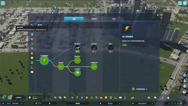提升城市等级解锁的另一种“发展点数”可以用来解锁更多高级建筑,包括道路设施、各式公共设施、交通工具等等。相比在提升等级时将一堆建筑一股脑解锁,让玩家摸不着头脑,这种根据需求解锁的方案显然更易理解。当你注意到城市中缺少高技术人才时,就可以解锁大学;当发现排污给水域带来了过大污染时,则可以解锁污水处理厂。整个流程循序渐进,让玩家可以自主学习如何经营一座城市的方方面面。
