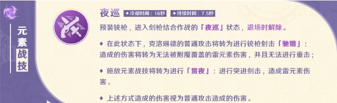 在此状态下,施放A被称为【驰猎】,施放E被称为【贯夜】。