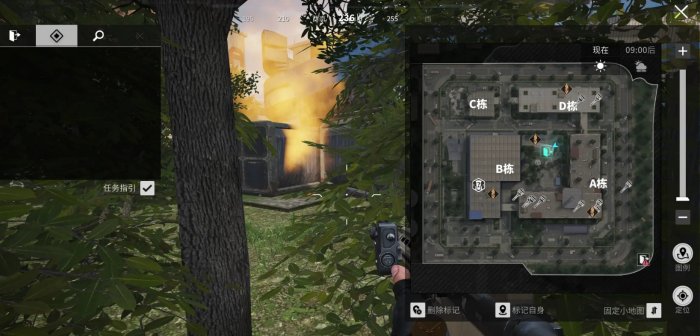 撤离点相对较为宽阔,建筑物较多,撤离前需清理。