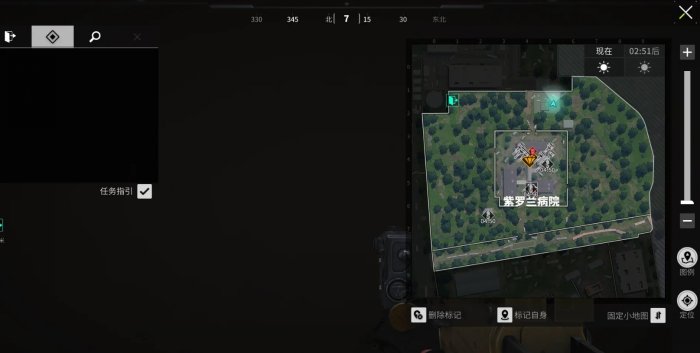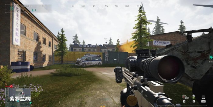 从地图上可以看到,本地图较为宽阔,室外区域较多但物资极少,大部分物资都在地图中央的紫罗兰病院1、2、3号楼,怎么区分?从病院南门进入,正对面(北面)是一号楼,左侧(西侧)是二号楼,右侧(东侧)是三号楼。