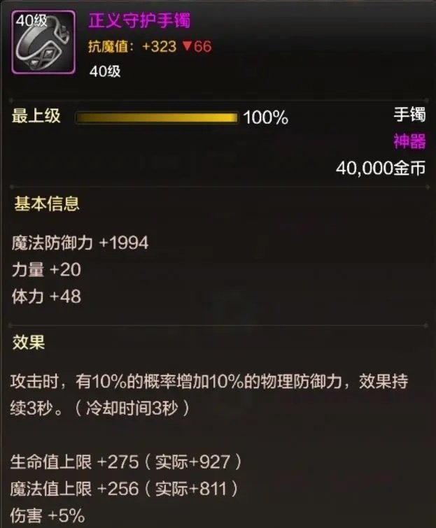 正义守护手镯增加伤害的同时还有一定的几率增加防御力来提高玩家的容错,非常实用。