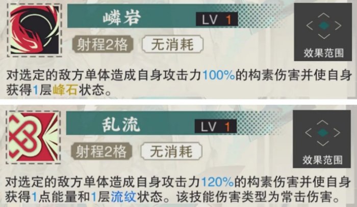 然后江山图的基础大招是最高150%倍率的十字格范围输出,马上我们再结合到4种强化大招来具体说明其不同的效果。