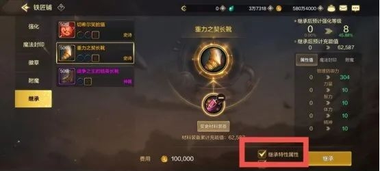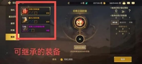 10万金币的消耗堪称九牛一毛,只要出“属性”和“效果”更强的装备,都可进行“继承”操作。