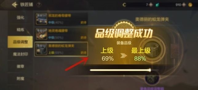 5、点击右下角的【品级调整】按钮,就可以调整品级成功。