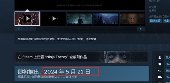 地狱之刃2塞娜的史诗的发售时间是2024年5月21日下午的16点,赶紧去准备购买开玩吧。