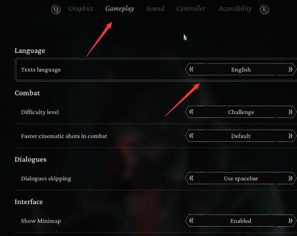 4、在“Gameplay”选项中,你会看到一个“Language”设置。