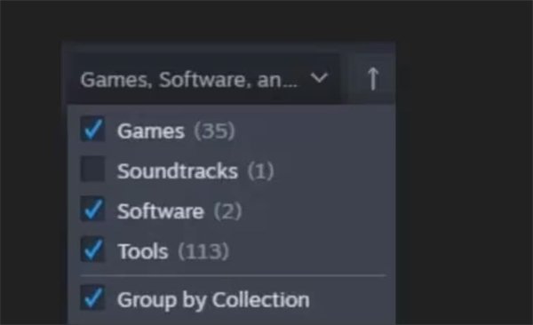 2、在搜索栏中玩家需要设置筛选列表,将除了Soundtracks之外的条件都勾选上。