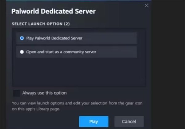 4、搜索结果出现之后,玩家直接点击,然后选择Play Palworld Dedicated Server。