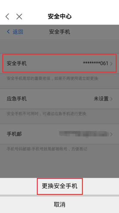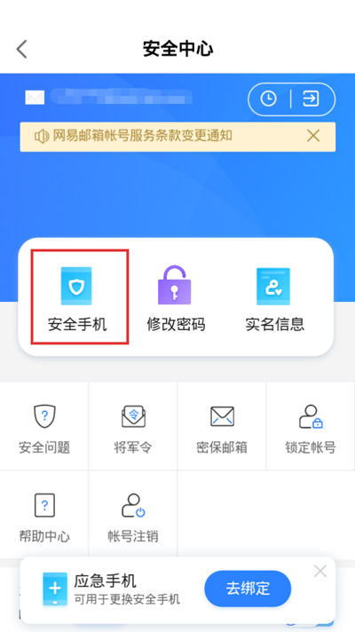 5.点击【安全手机】然后选择【更换安全手机】更换当前绑定的手机号码;
