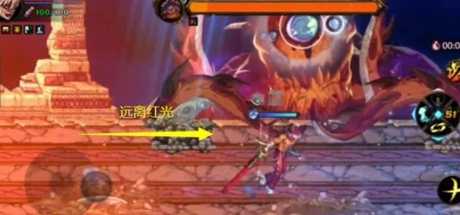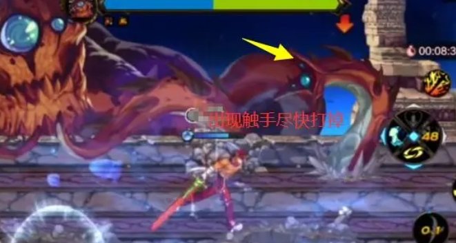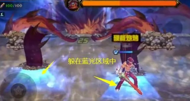 【应对方法】打断触手中会出现蓝光区域,躲在蓝光区域即可。