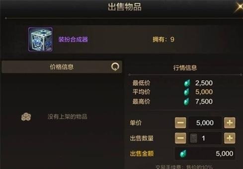 3.点击要出售的物品设置好金额就可以上架了,若卖出商品,那么扣除手续费后即为个人所得泰拉;