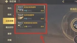 装备品级调整会失败,失败后品级就会下降。在铁匠铺选择品级调整,找到需要调整的装备,点击品级调整按钮,等待片刻即可完成品级的调整。