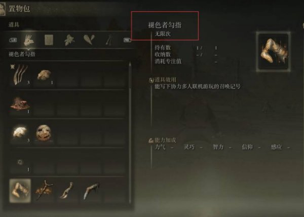 3、打开背包找到褪色者勾指,点击使用即可成功联机组队进行游戏,想进入哪个玩家的世界就哪个玩家使用勾指。