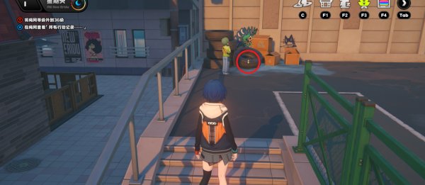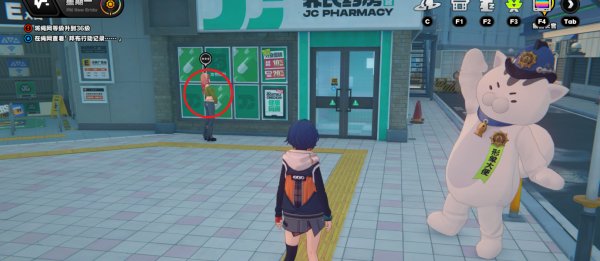 传送到步行区域,向右看,与路边的凛对话即可