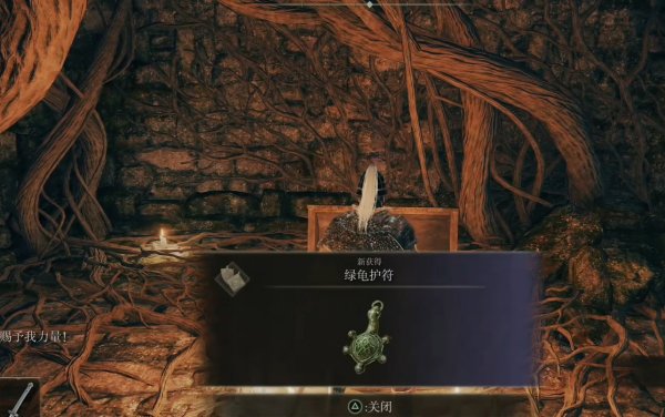 8、向“地下室”里面走,不用管里面的乌龟,直接去打开铁门,再去打开里面的宝箱,获得“绿龟护符”。