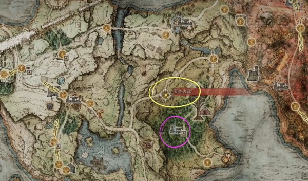 9、然后传送到“宁姆格福(北)”区域的“雾林边缘”赐福点,标记好目标地点,向“雾林废墟”前进
