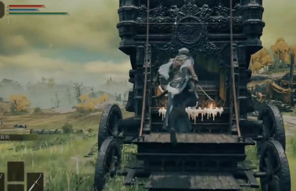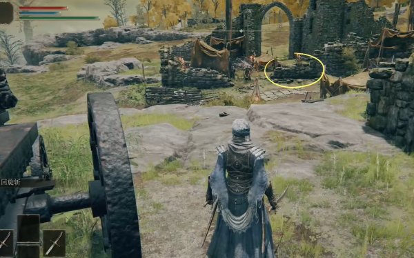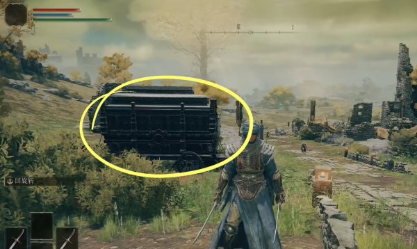 6、接着去前面远端的马车处,向左边,废墟外面走,从外侧绕过去