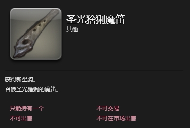 一、通过副本获得:海德林晖光歼灭战有概率掉落圣光猞猁魔笛。