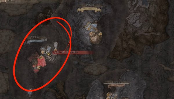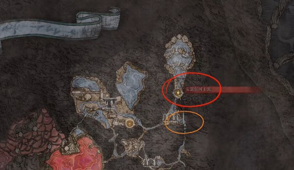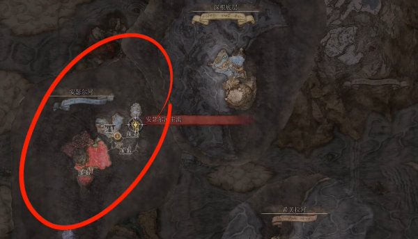 1、打开地下地图,找到“安瑟尔河”区域的“安瑟尔河主流”,目标位置就在它的下面,标记好目标位置。
