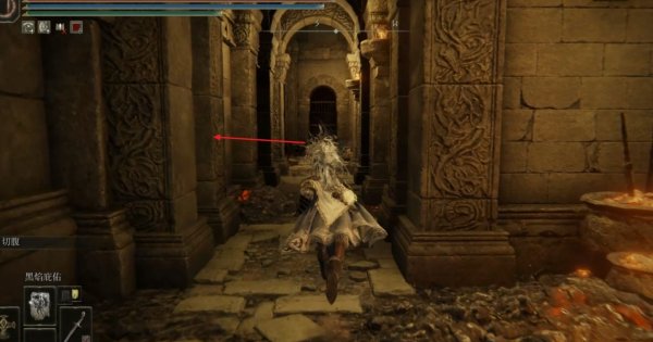 5、直走到一处中间塌陷的区域后,先跳到对面,然后往右跳到右侧的大柱子上。