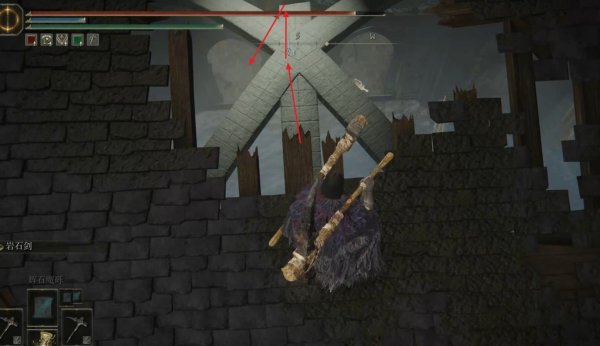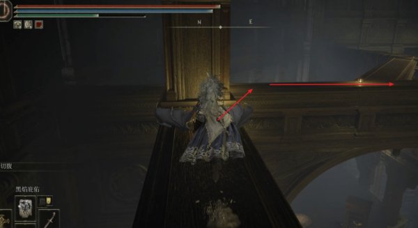 14、然后击败这个目标横梁前方的蝙蝠怪物,跳到右侧的横梁继续走。