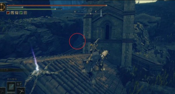 5、在教区开始跳房子,先沿着下图所示路线跳到前方左侧的房顶上。