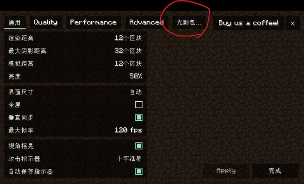 原版游戏不支持光影,使用光影需要先安装光影模组。
