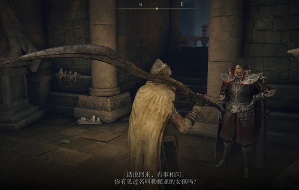 1、在圆桌厅堂的圆桌旁可以找到该NPC,与其交谈后得知他正在寻找一个名为【勒妮亚】的女孩。