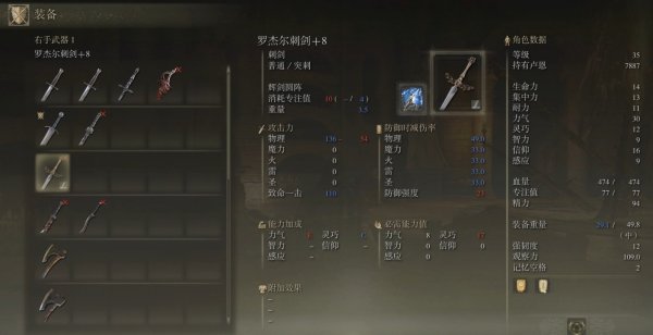 5、罗杰尔刺剑的属性如下。