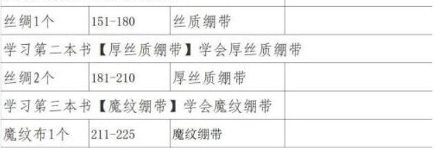 375级之前:亚麻布160个、毛料170个、丝绸240个、魔纹布100个、符文布170个、灵纹布60个。