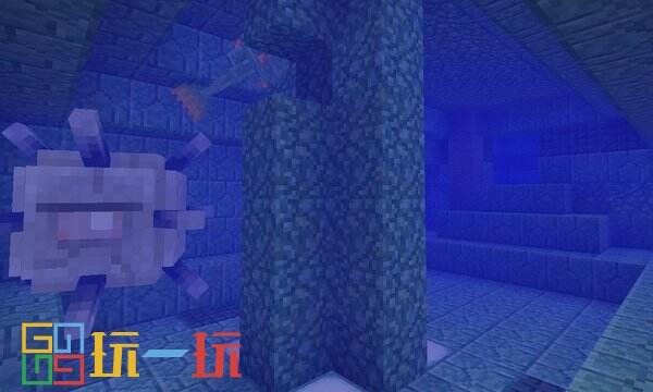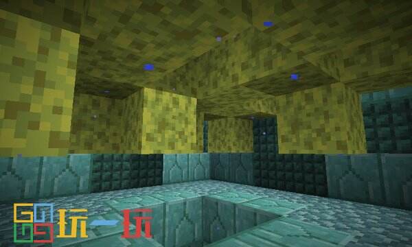 有些海底神殿某个房间的天花板上会出现湿海绵。有时,这样的房间可能不止一个。