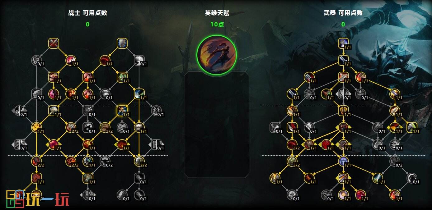 11.0前夕版本的武器战天赋如下图所示