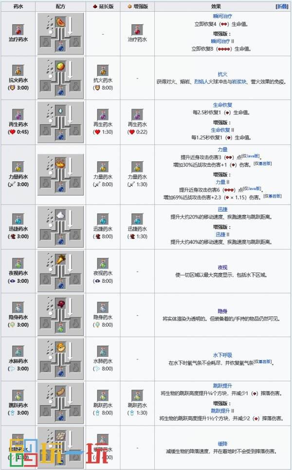 我的世界药水效果配方酿造大全
