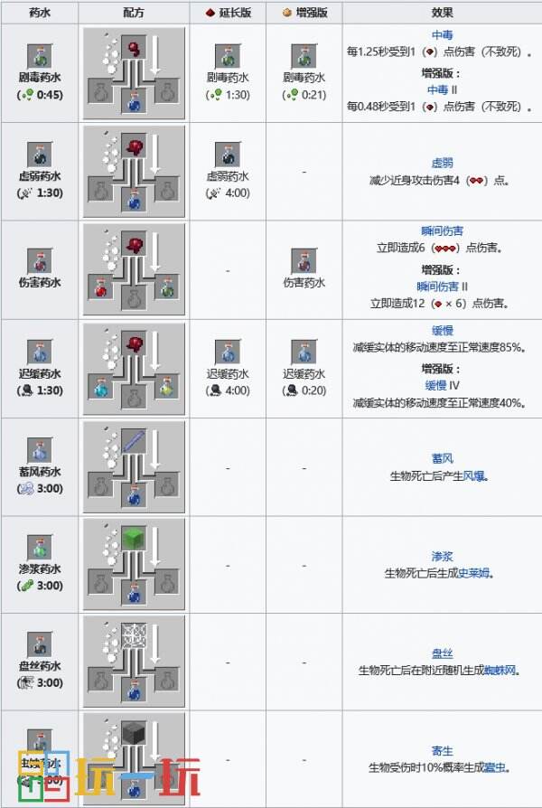 以上就是我的世界药水效果配方酿造大全的所有内容了,想了解更多相关攻略资讯可前往B游我的世界专区查看。