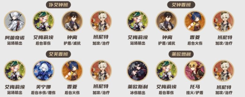 任意草系角色则可根据需要选择增伤或辅助角色。