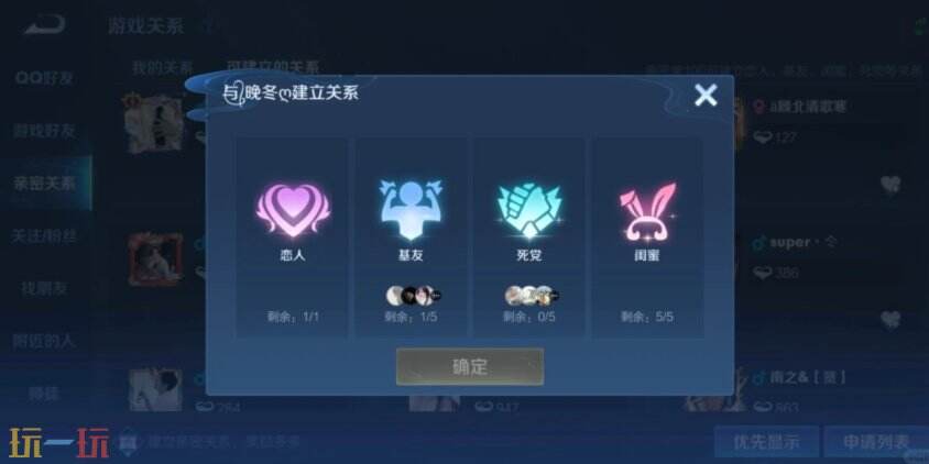 1.建立亲密关系需要一定的亲密度。与好友一起组队可以增加亲密度。