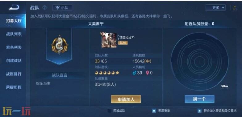 1.首先打开战队界面你会看到左上角有个小队然后点击进入。