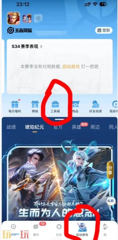 1.下载王者营地,安装后打开点击启动游戏界面的工具箱。