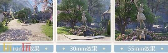 3.以游戏世界内场景为例,同样1.5X镜头距离情况下,不同焦距调节产生的画面效果
