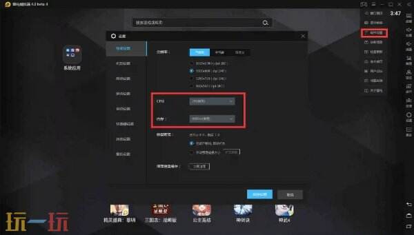 3、模拟器右上角软件设置,点开性能设置选择cpu2核,内存2048M保存设置,如果游戏包过大或者游戏画质要求高,可以选择cpu4核,内存4096M,保存设置即可。